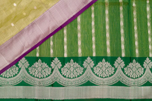- Banaras tissue brocade silk handwoven with contrast gold zari designs all over
