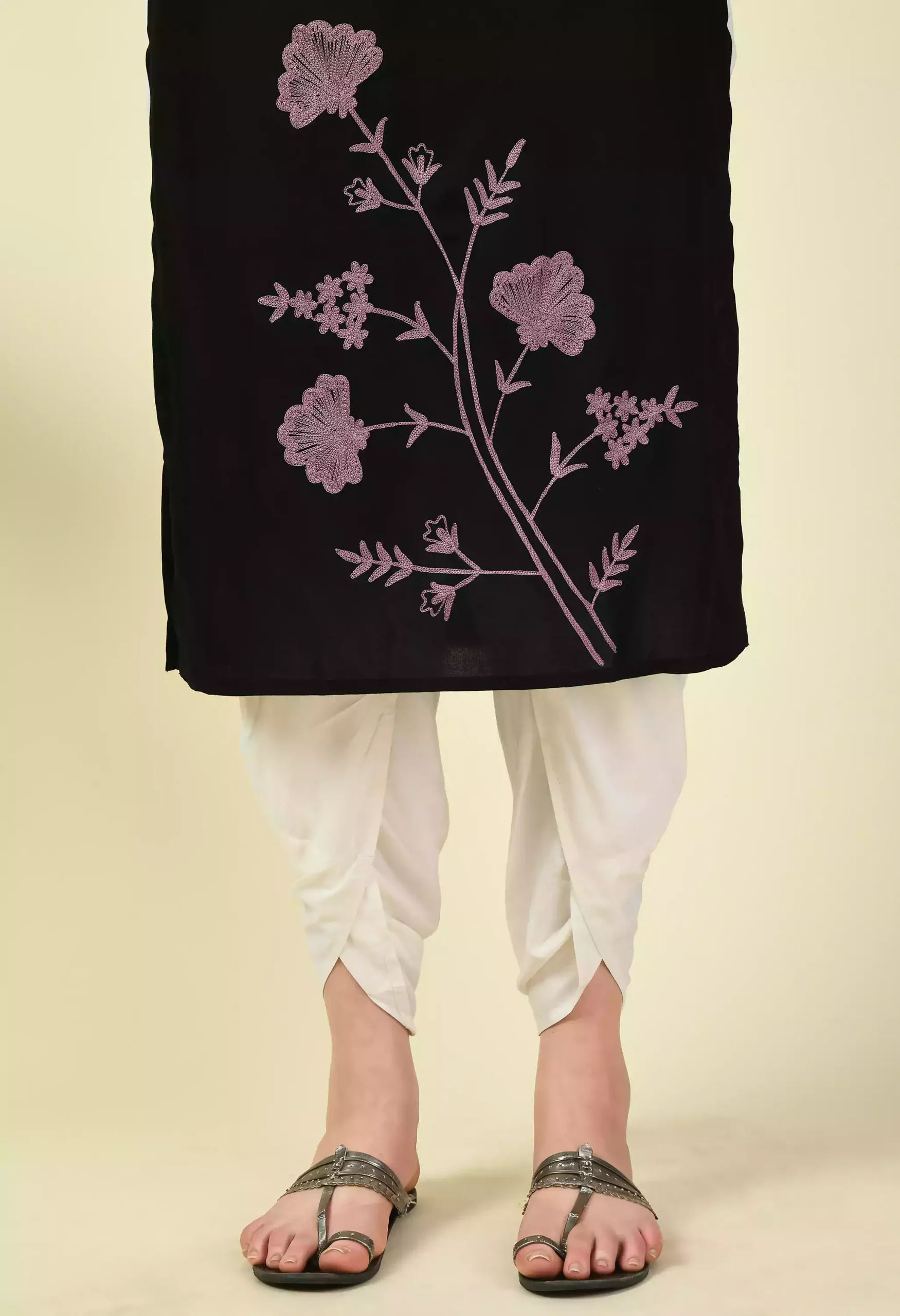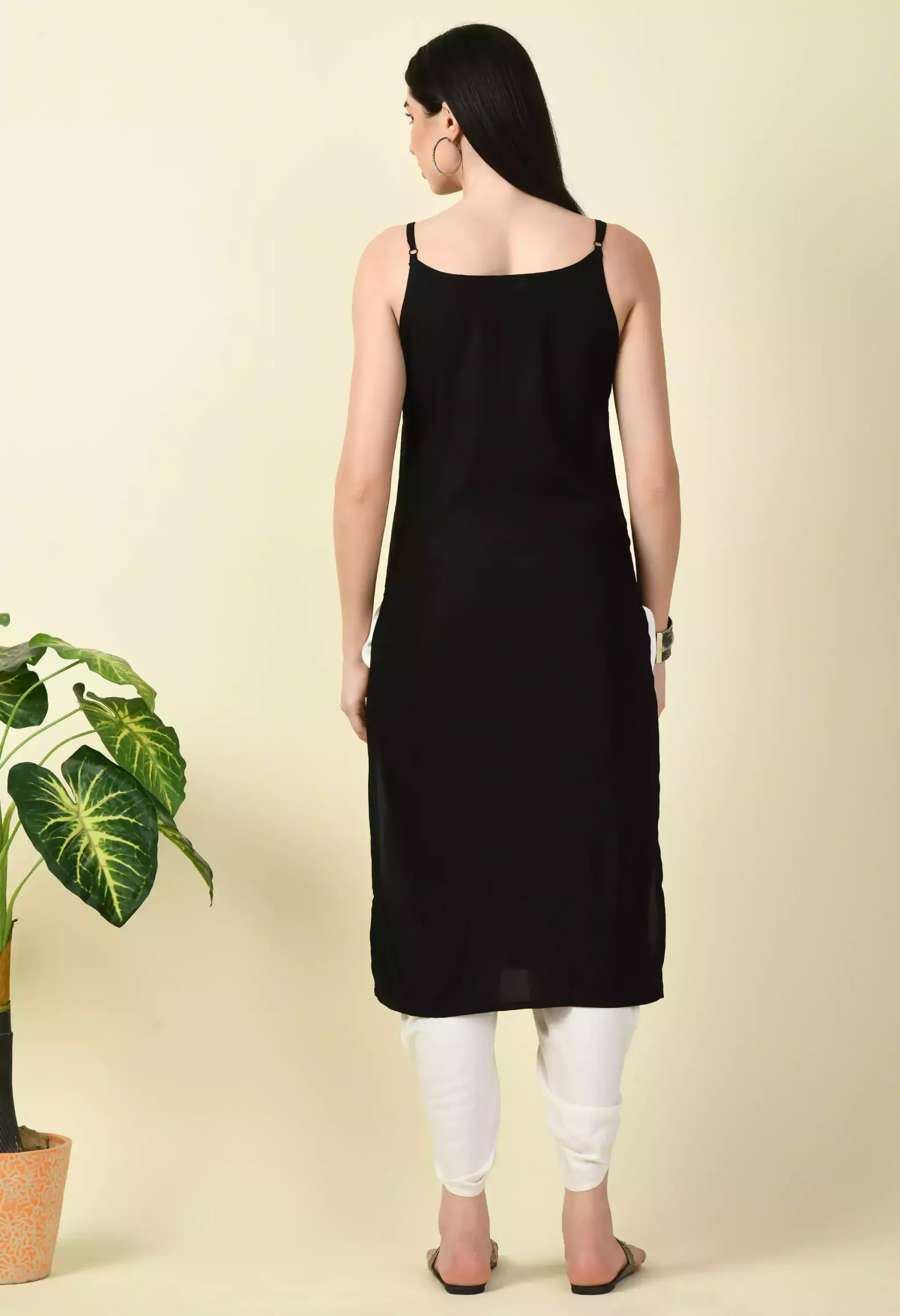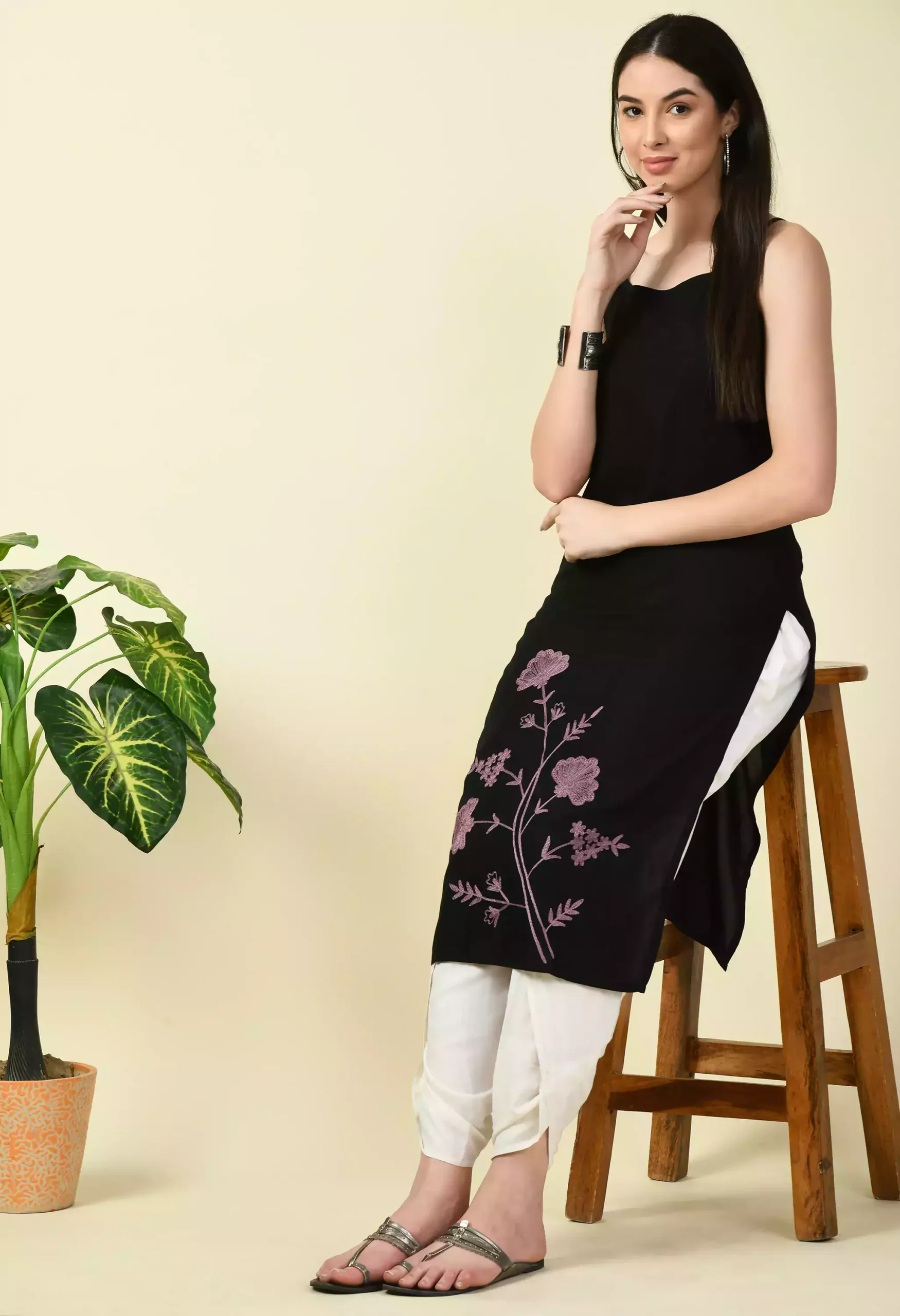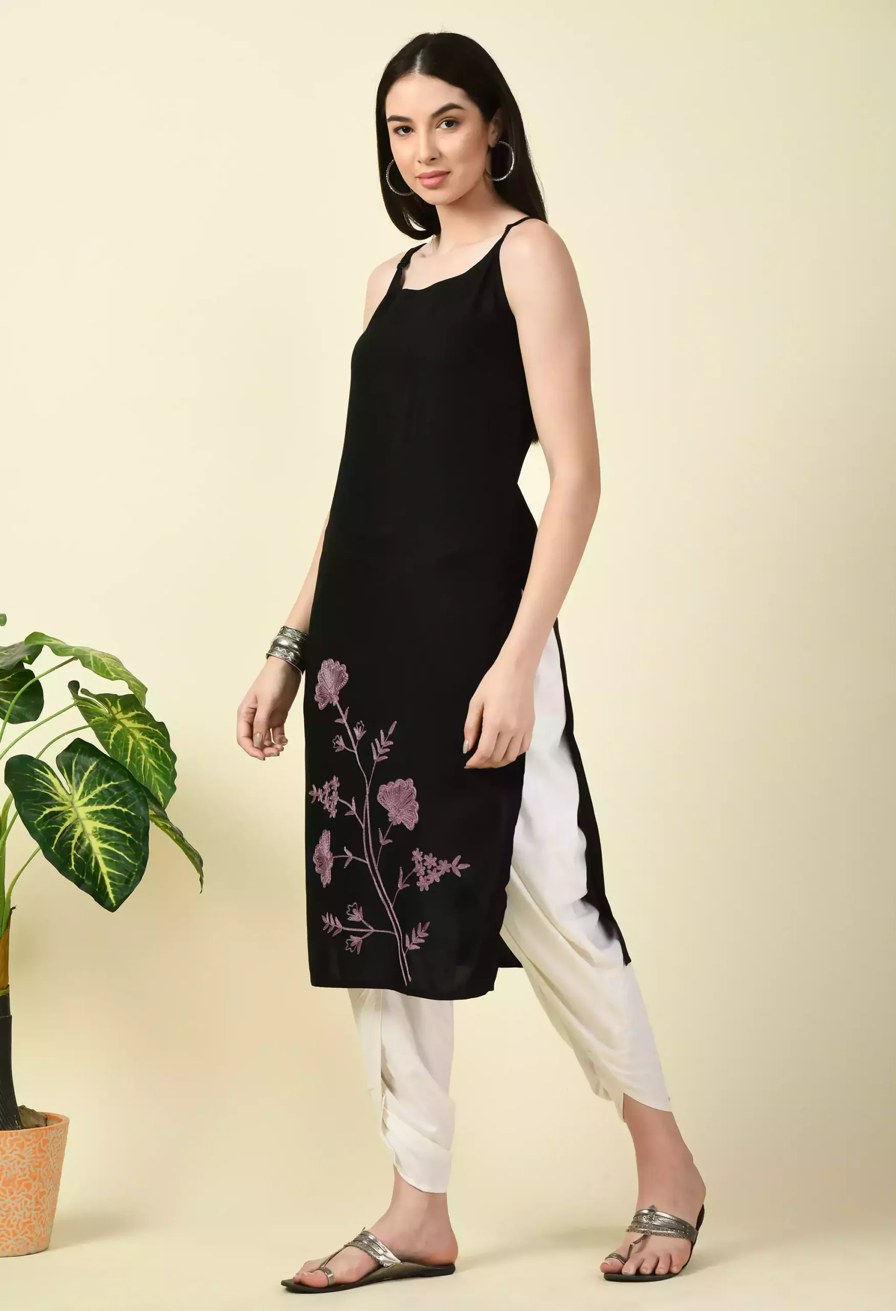 Black Pashmina Work Sleeveless Kurti