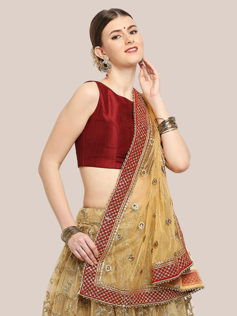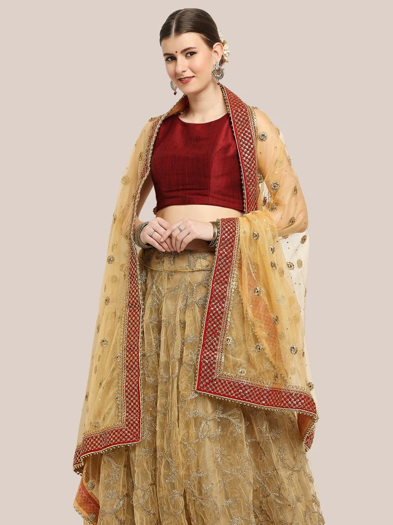 - This gorgeous net dupatta in auspicious hues can be used as a bridal Dupatta /Chunri to cover head and shoulders during functions and ceremonies. It can also be used to visit religious places and functions like mata ki chowki etc. This dupatta will be a wonderful addition to your wedding wardrobe.