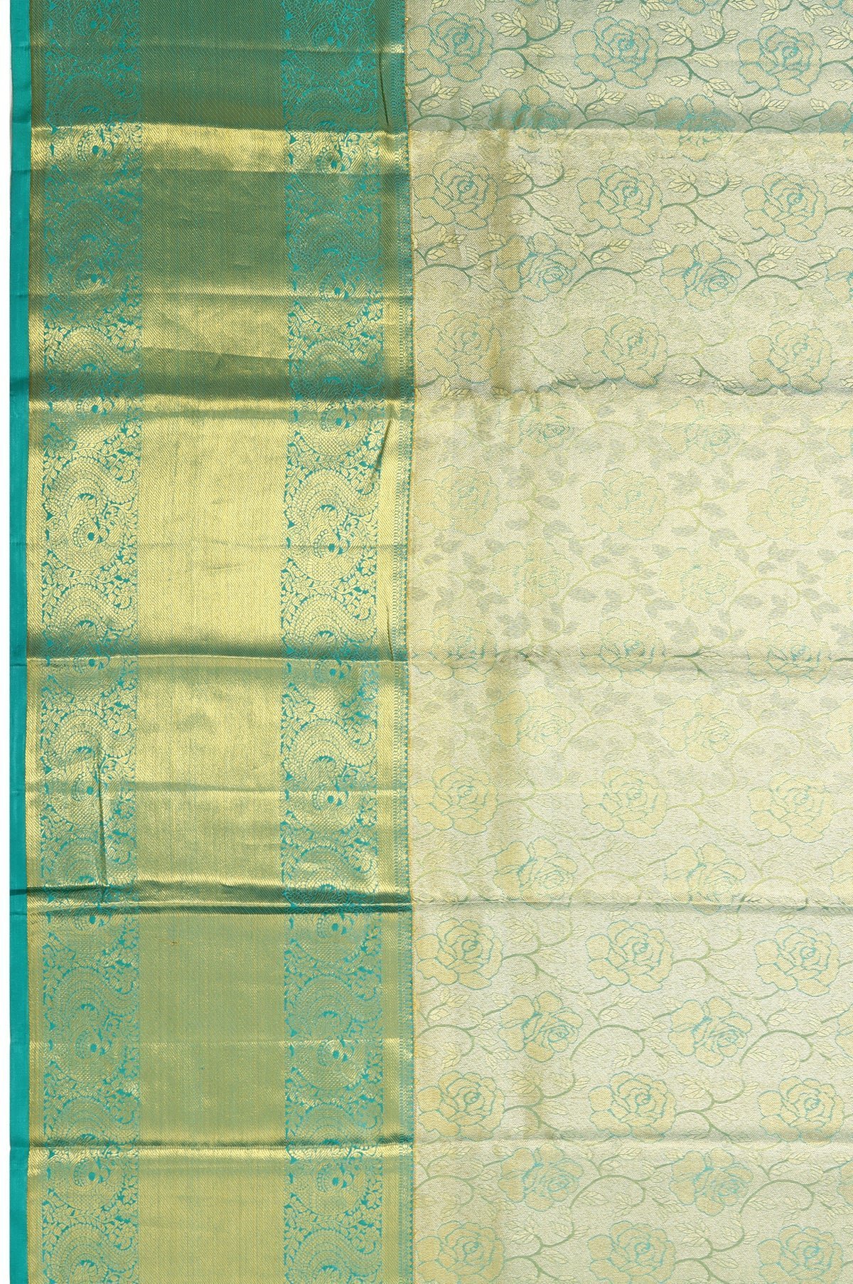 Gold Kanchipuram Silk Saree with Floral Design and Sea Green Border