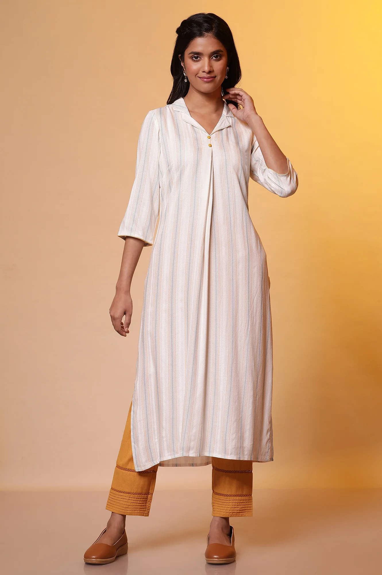 Product Details Fabric Content: 12% flax, 88% cotton Fabric Detail: Cotton Blend Fit: Regular Fit Closure: Button Occasion: Casual Length: Knee Length Ethnicity: Casual Pattern: Floral Care: Machine Wash Fabric Process: Print Fabric Type: Woven Hemline: Straight Elegantly crafted with intricate Schiffli embroidery, this lightweight palazzo offers a perfect blend of comfort and style. The…