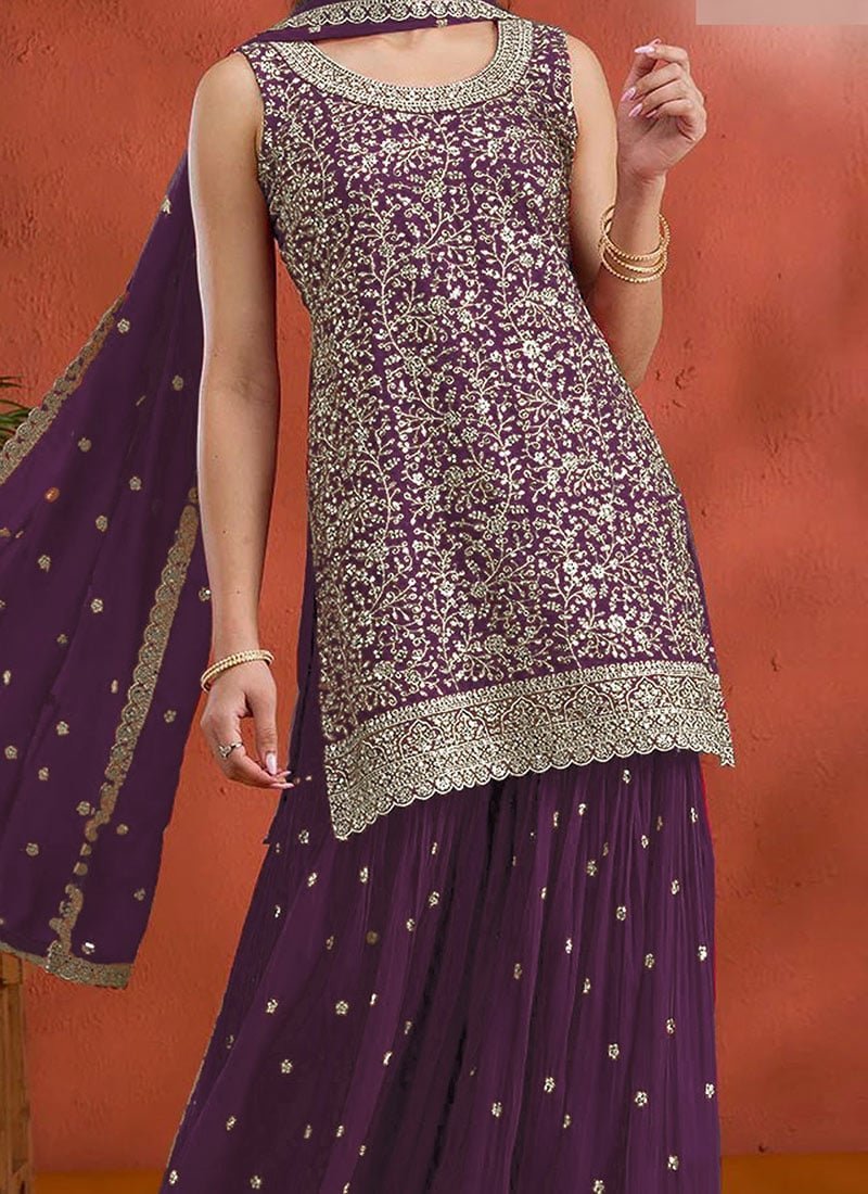 Purple Georgette Embroidered Sequin Palazzo Set Festive Wear
