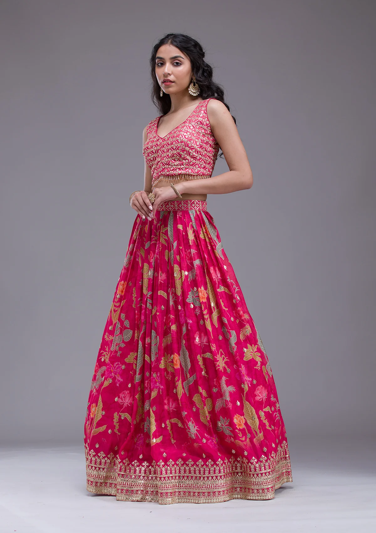 Illuminate any room with the exuberant spark of radiant purple Georgette Lehenga, adorned with dazzling sequins that dance under the lights. This masterpiece blends luxurious georgette fabric with meticulous embroidery to craft a silhouette that’s as breathtaking as it is comfortable. Perfect for those who love to express their vibrant, playful spirit, this lehenga promises to make every twirl memorable!.