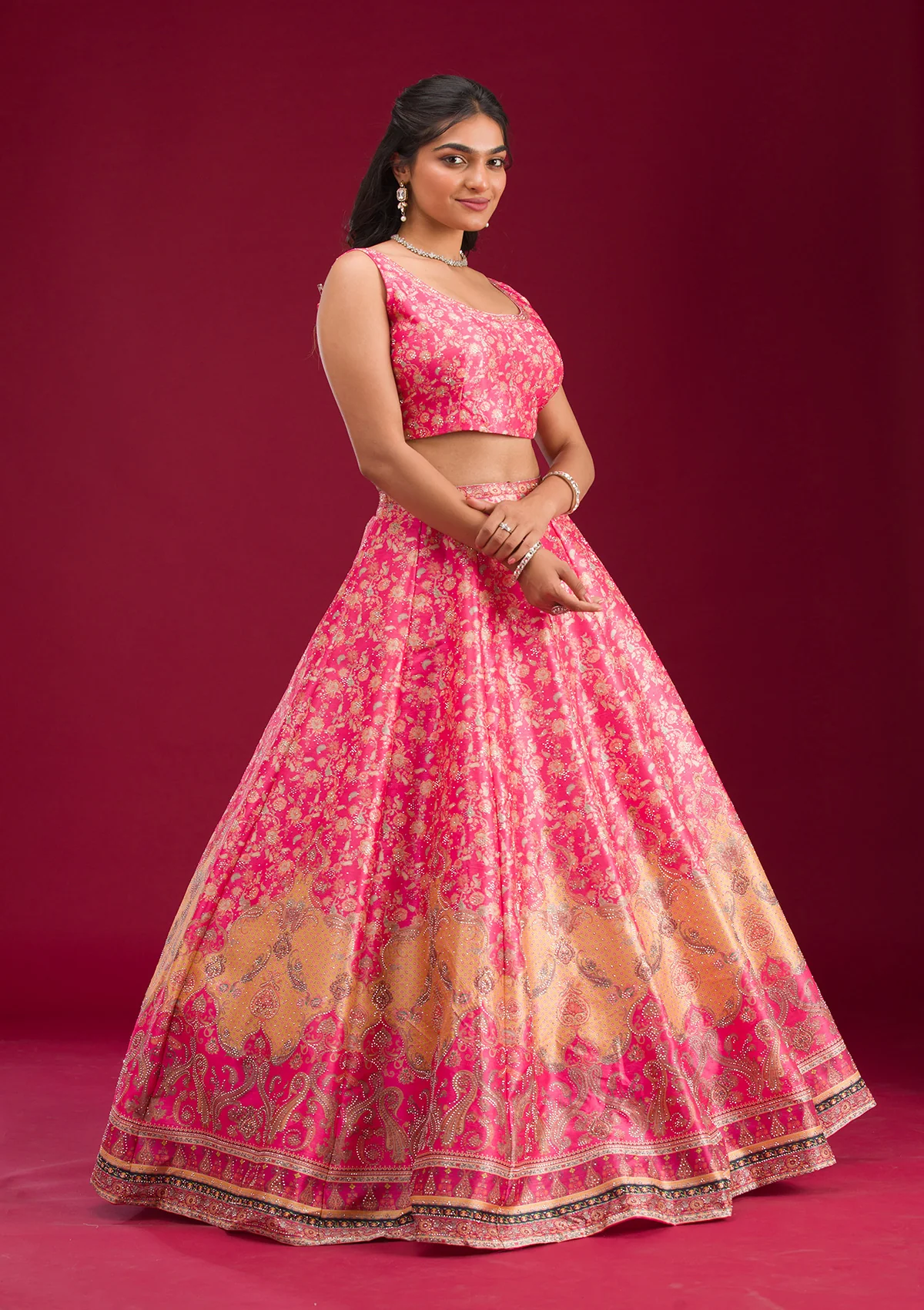 Rani Pink Swarovski Raw Silk Readymade Lehenga