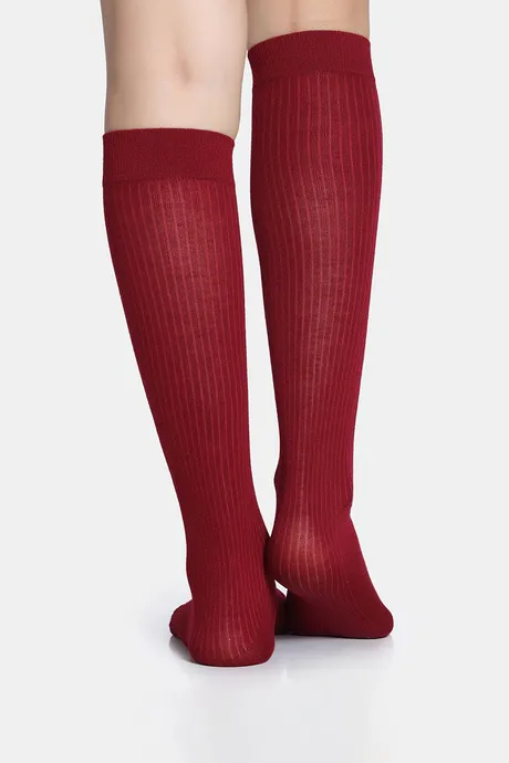 Red Full Length Polyester Elastane Socks