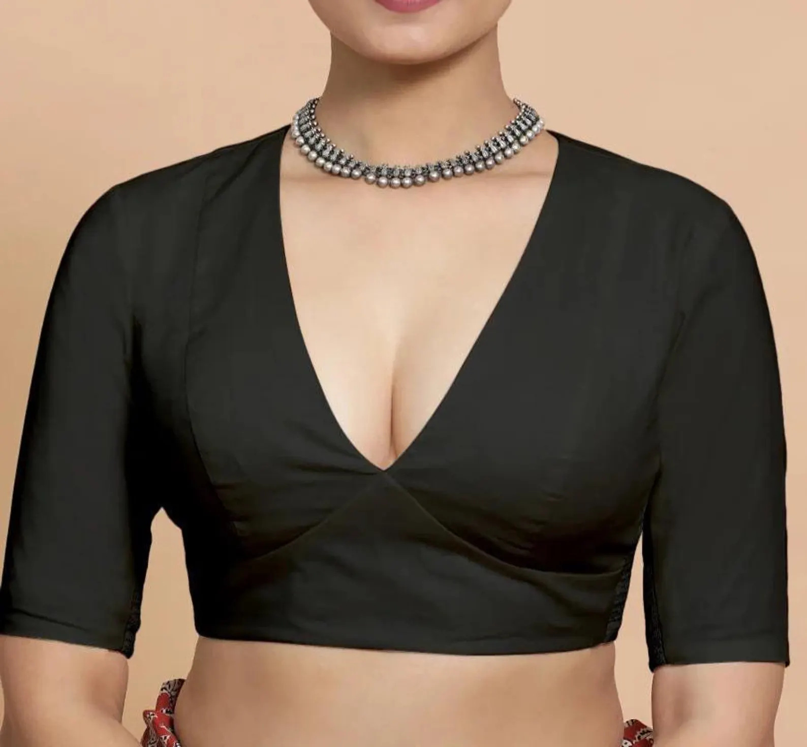 Made To Order Indian Designer Black colour Saree Lehenga Blouse Deep -V Neck Half sleeves blouse for women !! blouse , women blouse
