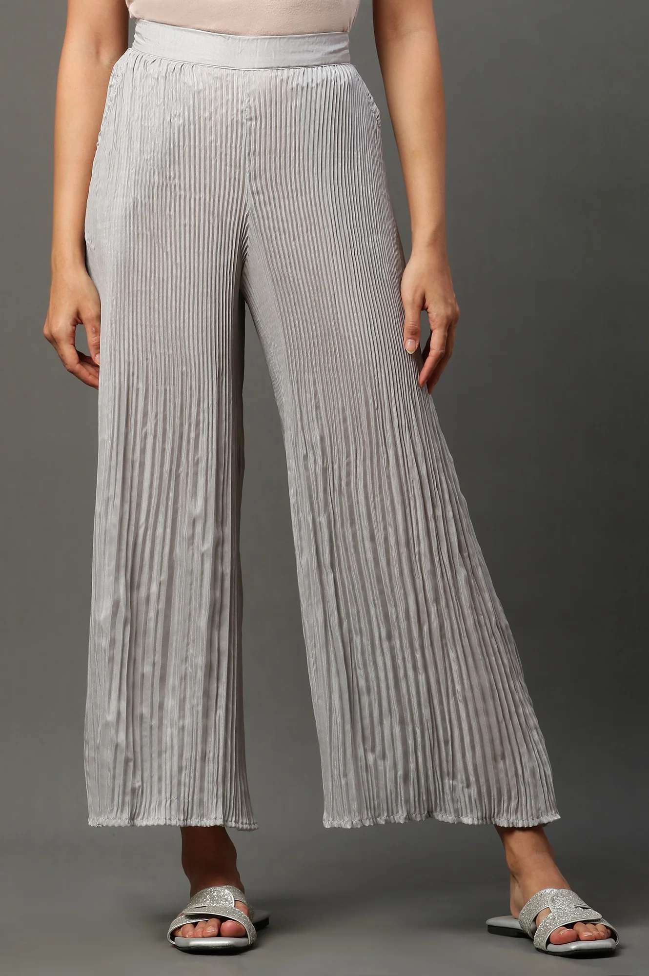 Silver Solid Flared Woven Sharara With Pleats