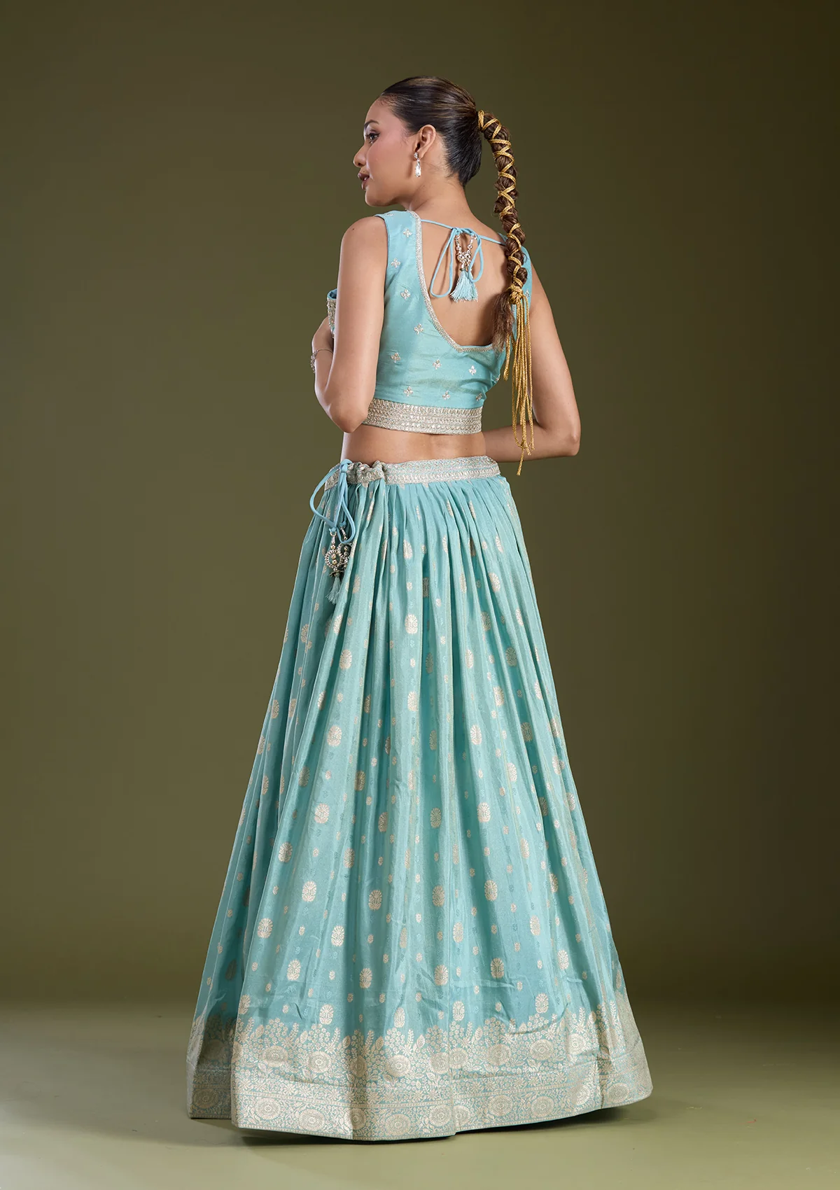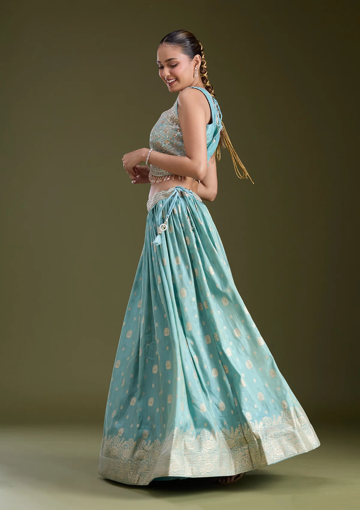 Sky Blue Sequins Banarasi Readymade Lehenga