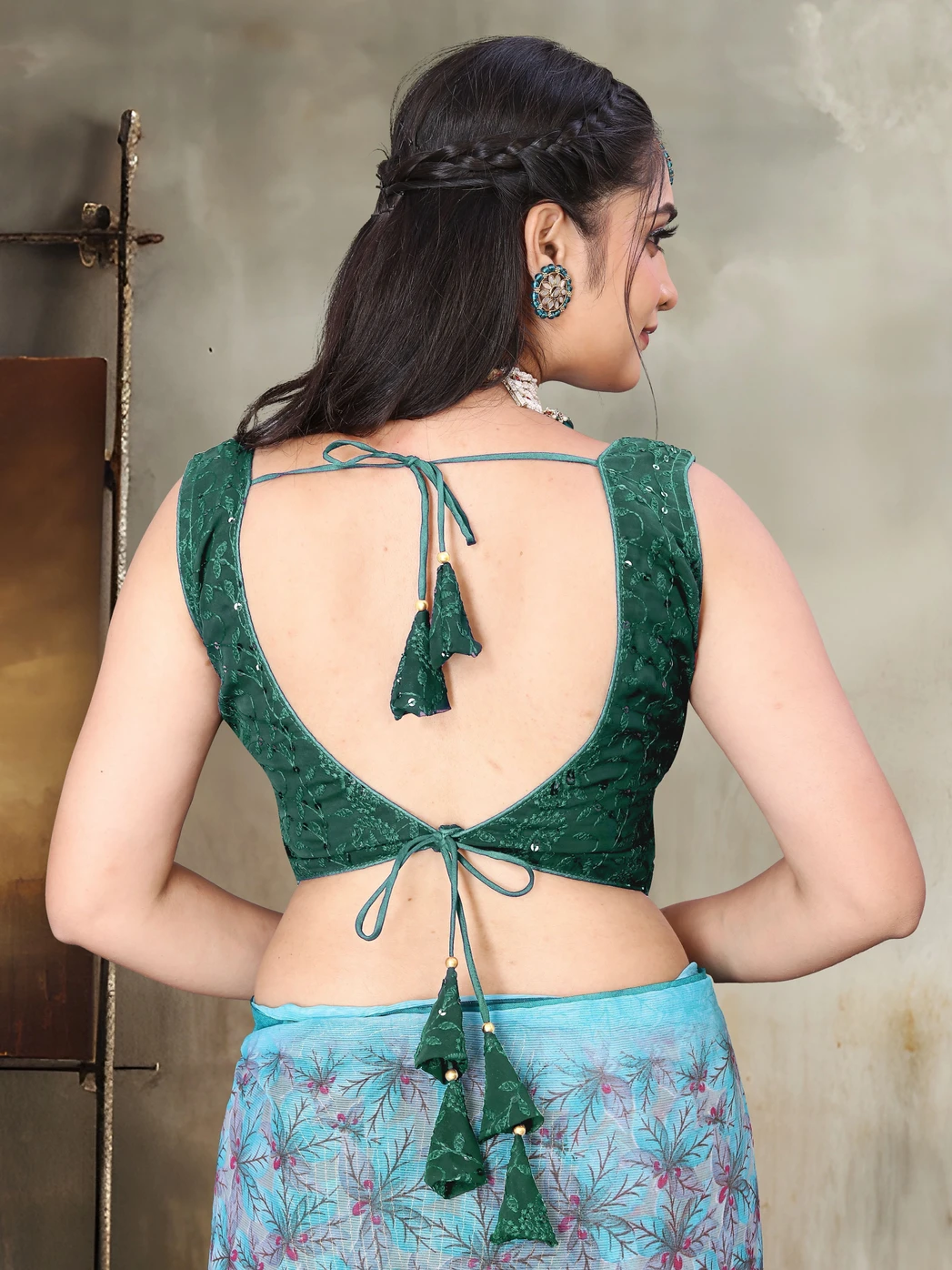Georgette sleeveless embroidered readymade blouse. Madefrom premium quality fabric. This blouse is extremely comfortable and a great choice for any season or festive season. This blouse has high-quality fabric; you can wear itwith a solid coloured saree. Sizes are from -30 to 36, if thesize seems a little smaller, then you can get the fitting done asper your requirement, a margin is given for that.