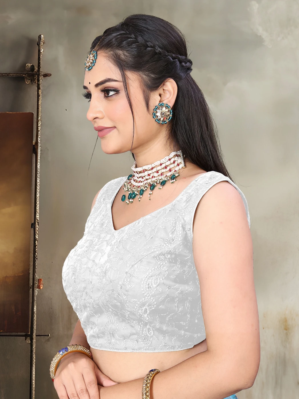 Georgette sleeveless embroidered readymade blouse. Madefrom premium quality fabric. This blouse is extremely comfortable and a great choice for any season or festive season. This blouse has high-quality fabric; you can wear itwith a solid coloured saree. Sizes are from -30 to 36, if thesize seems a little smaller, then you can get the fitting…