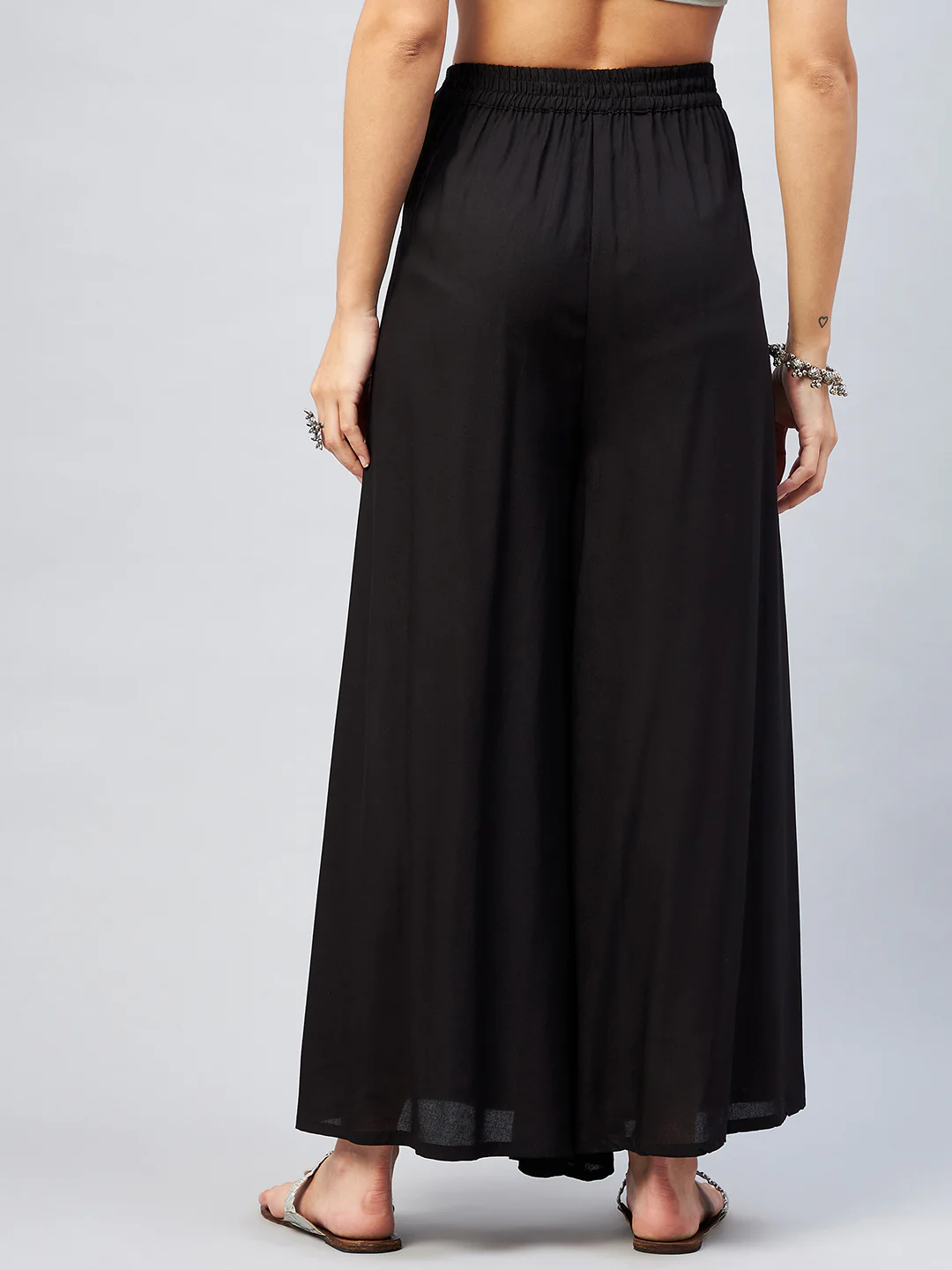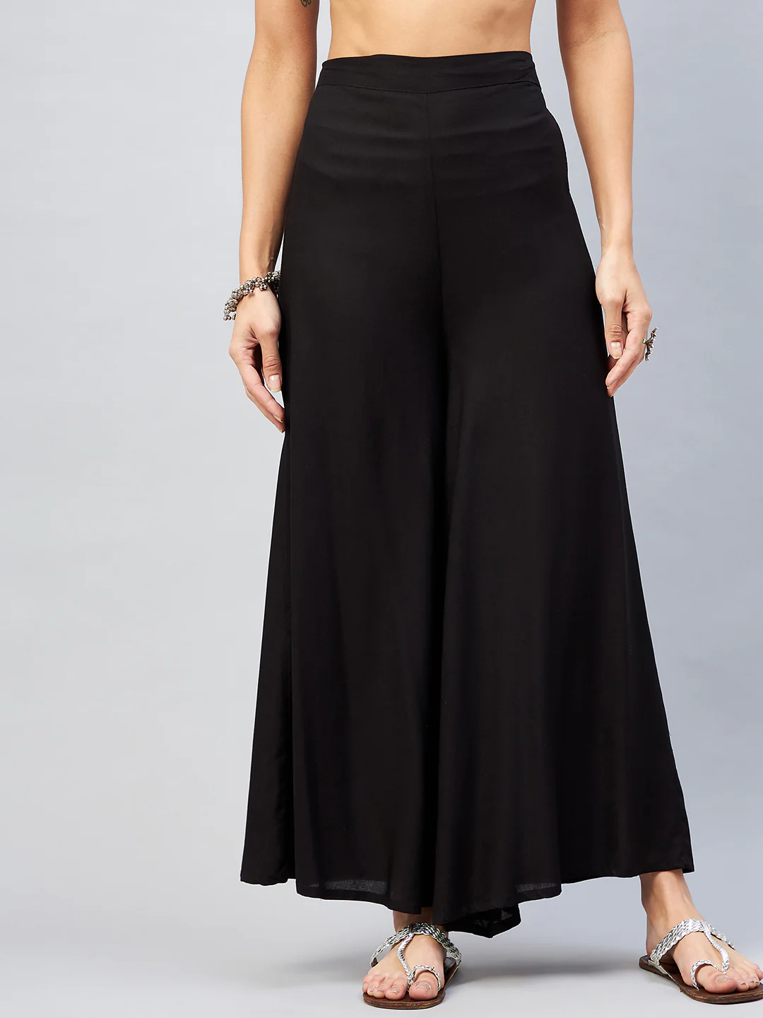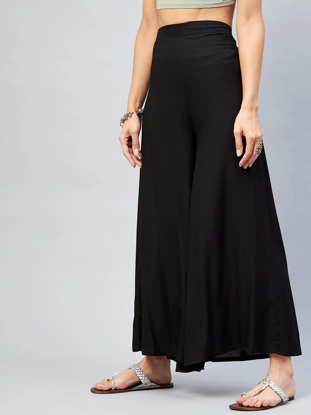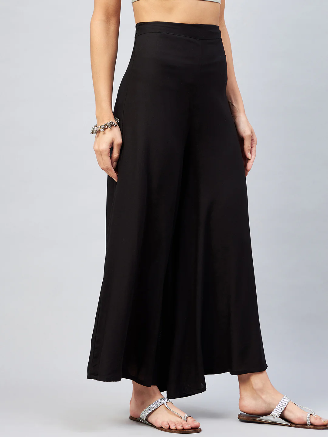 Embrace the spirit of summer with this pair of cool, gray-colored handloom palazzos. These cropped palazzos are made with original cotton fabric and showcase pretty front pleats.
