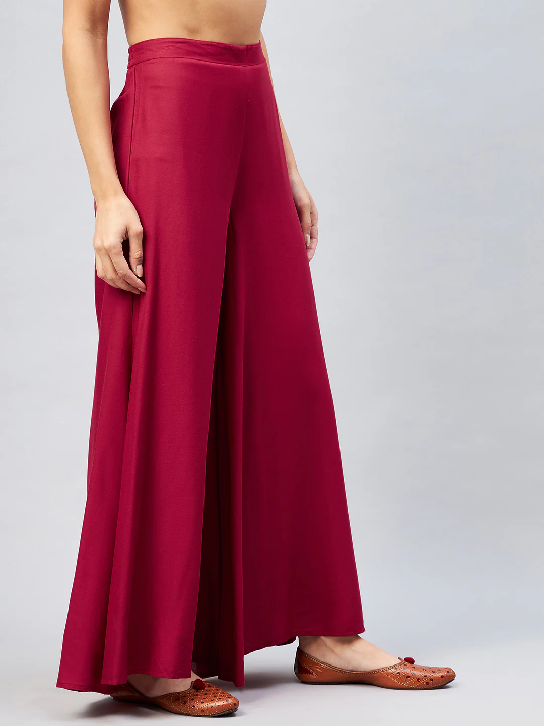 Viscose Rayon Solid Maroon Handloom Palazzo