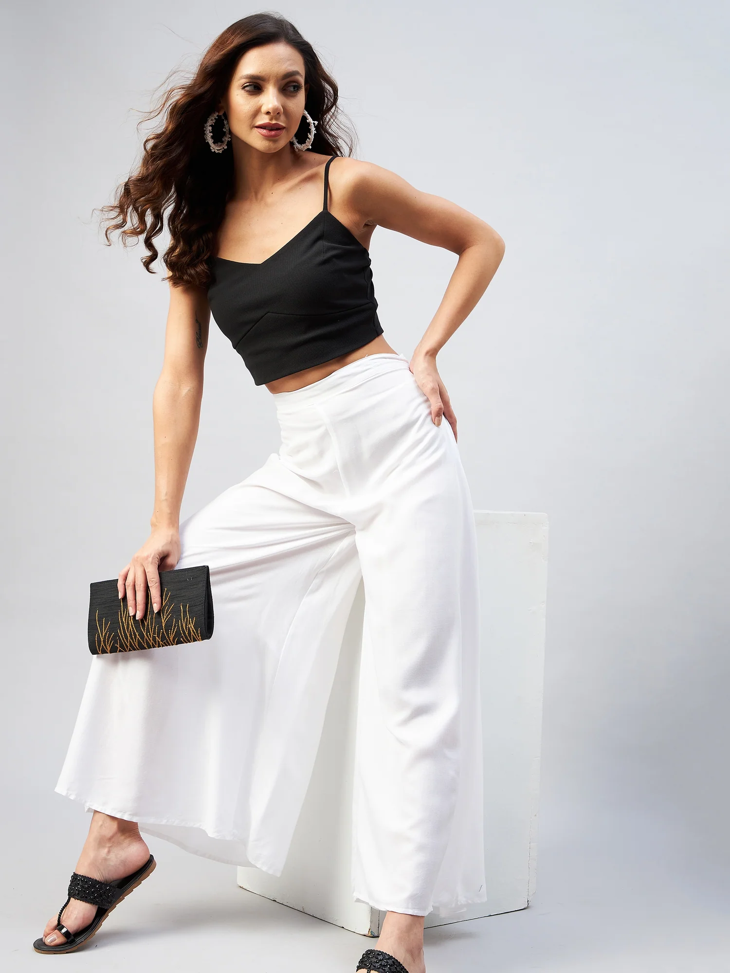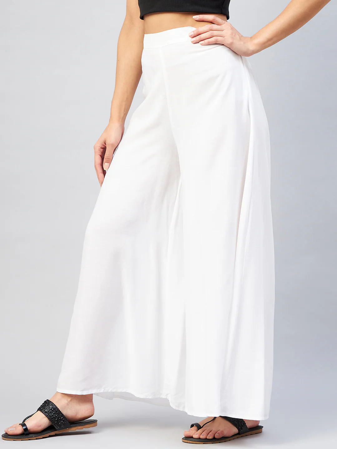 Viscose Rayon Solid White Handloom Palazzo