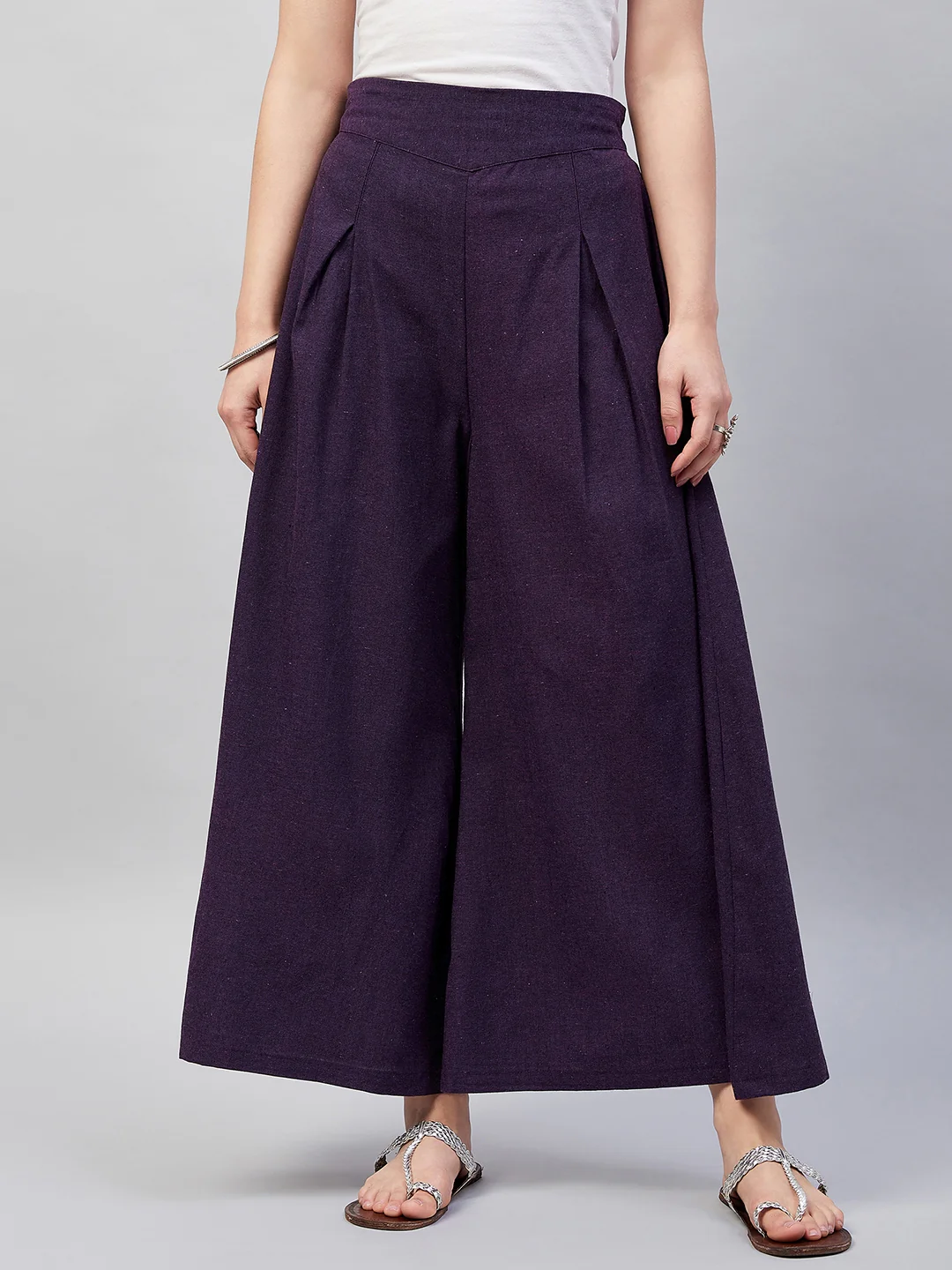 Embrace the spirit of summer with this pair of cool, gray-colored handloom palazzos. These cropped palazzos are made with original cotton fabric and showcase pretty front pleats.