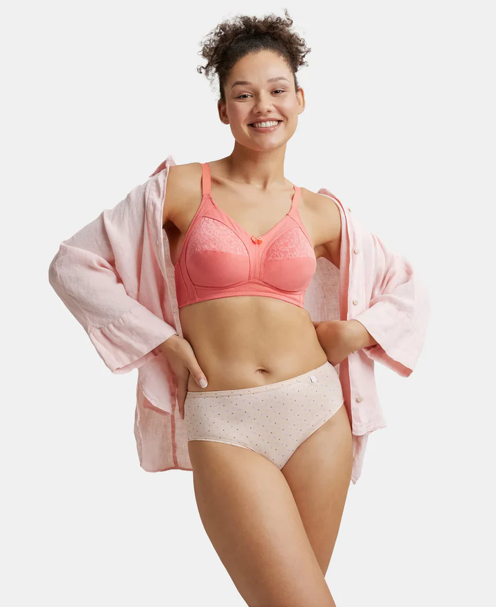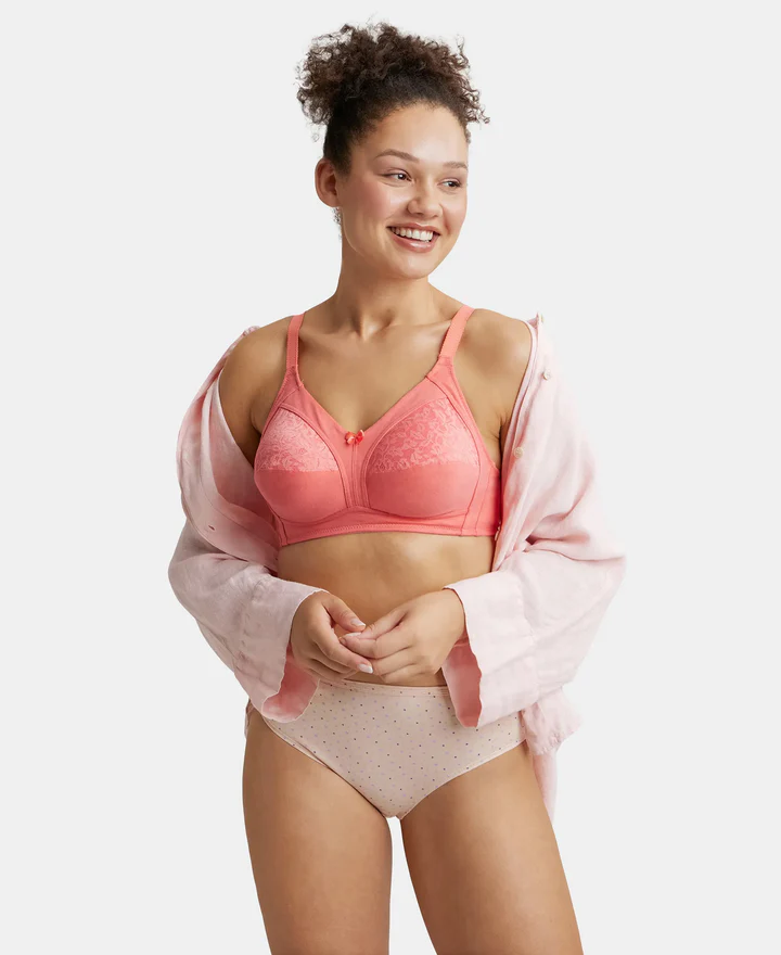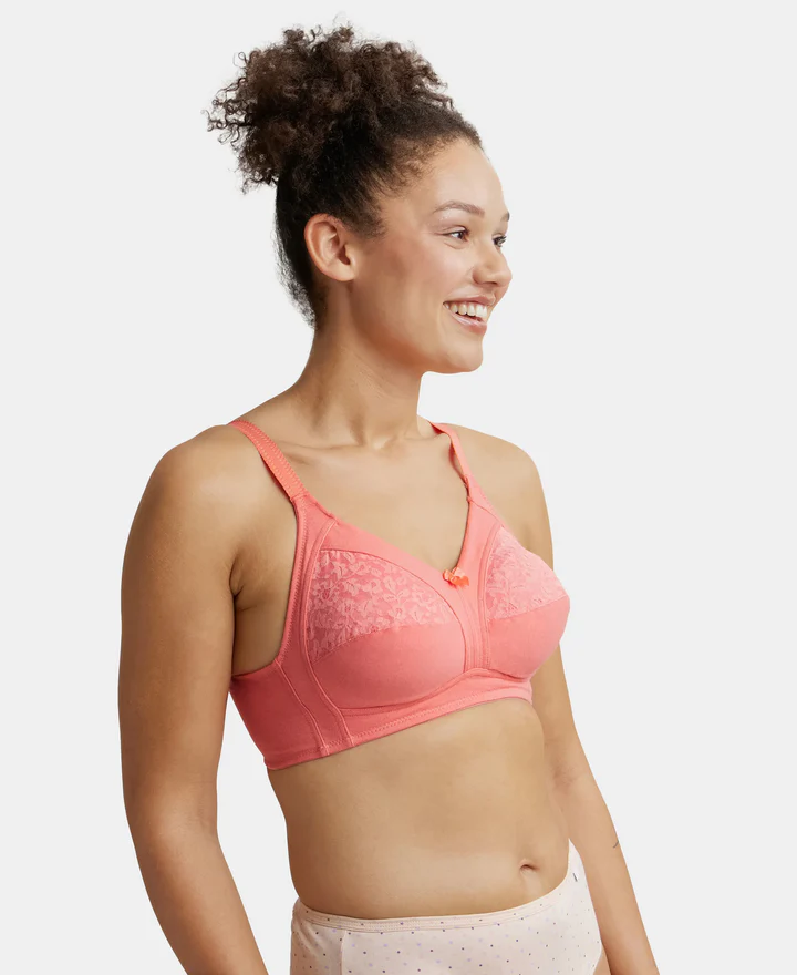 Wire free Non Padded Super Combed Cotton Elastane Stretch Full Coverage Plus Size Bra with Lace Styling