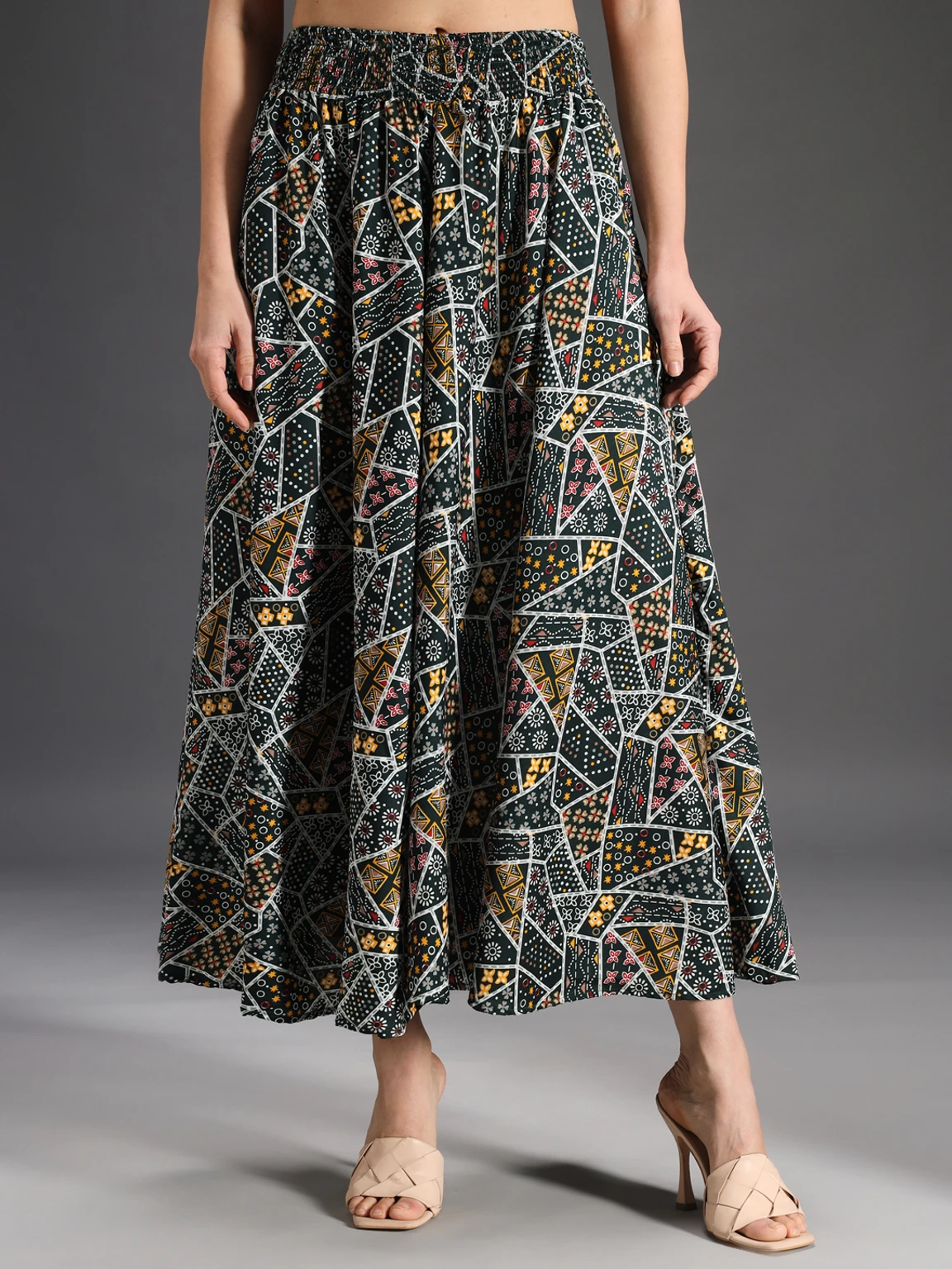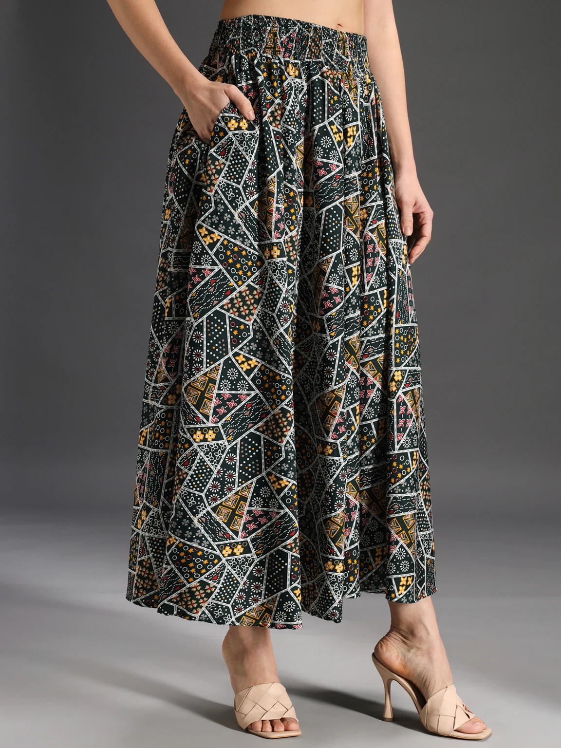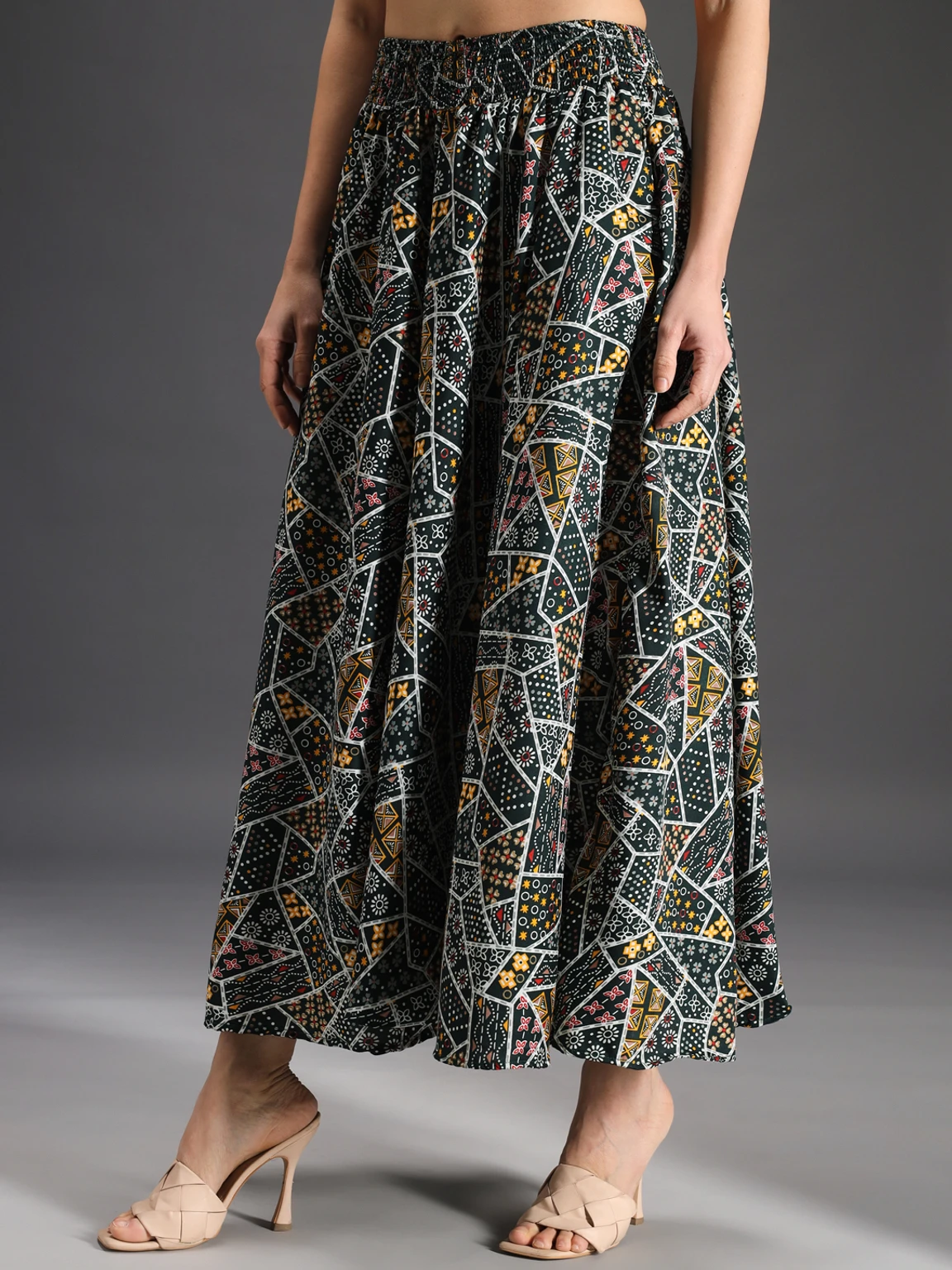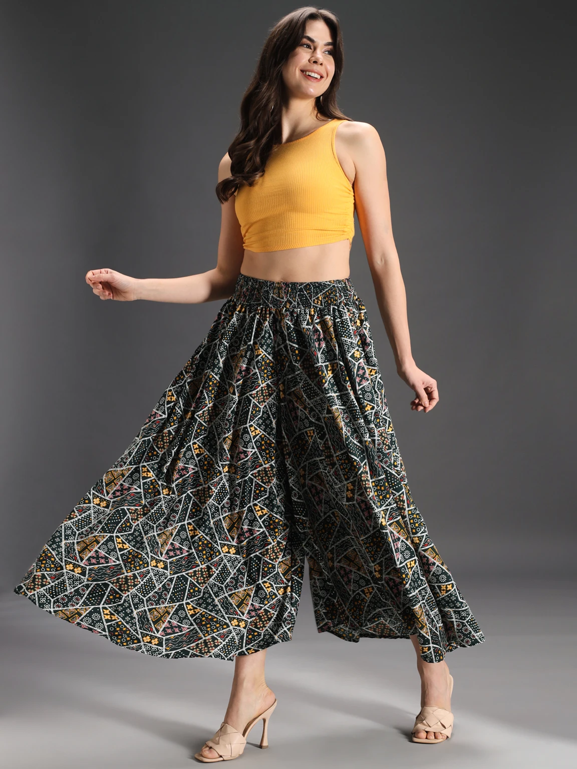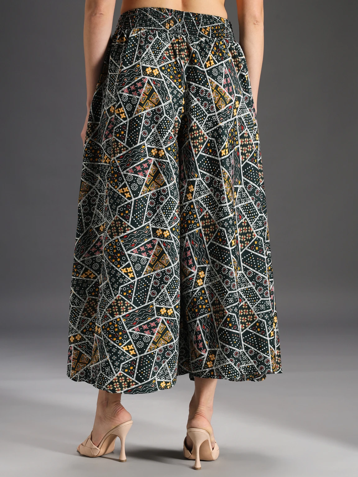 Women Flared Green, Yellow, Multicolor Viscose Rayon Palazzos