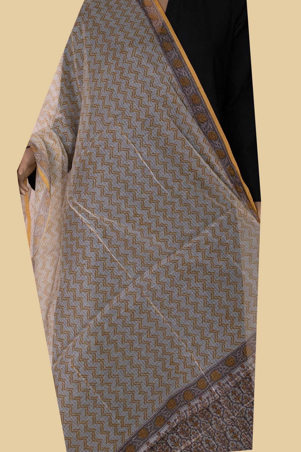 Beautifully Handwoven cotton dupatta. These unique dupattas are woven in such a way that the missing checks form a pattern. Unmatched charm of handwoven cotton brought to life with this lightweight fine cotton dupatta.
